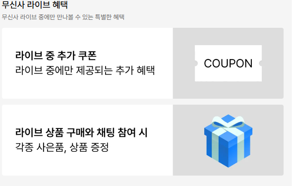 - 즉시 구매 결정: 라이브 방송 중 상품 강좌와 할인 한도를 보고 빠르게 구매하세요. 망설이면 품절될 수 있어요!