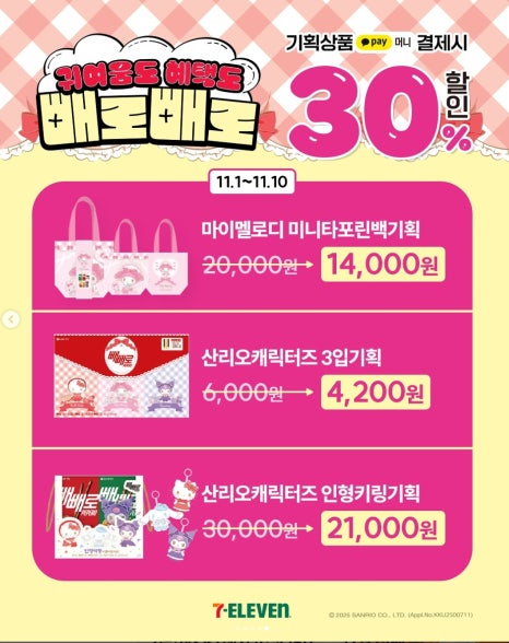 11월이 시작되면 편의점 진열대가 갑자기 반짝이기 시작하죠. 저도 퇴근길에 홀린 듯 세븐일레븐 문을 열었는데, “하나만 사야지…”라고 다짐했지만, 손에는 이미 산리오캐릭터즈와 테디베어 굿즈들이 가득했습니다. 이번 2025년 빼빼로데이는 정말 역대급이라고 해도 과언이 아니에요. 세븐일레븐이 산리오와 손잡고 덕후 심장을 제대로 저격했거든요.