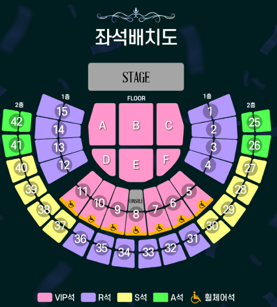 - FLOOR 좌석: 단차가 없는 평지에 플라스틱 간이 의자가 설치됩니다.