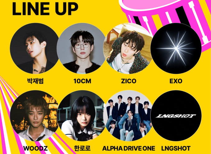 - 화려한 1~4차 라인업: 아이브, 플레이브, NCT WISH, 아일릿, 박재범, 지코, EXO 등 K-POP 레전드와 대세 신인들이 총출동합니다.